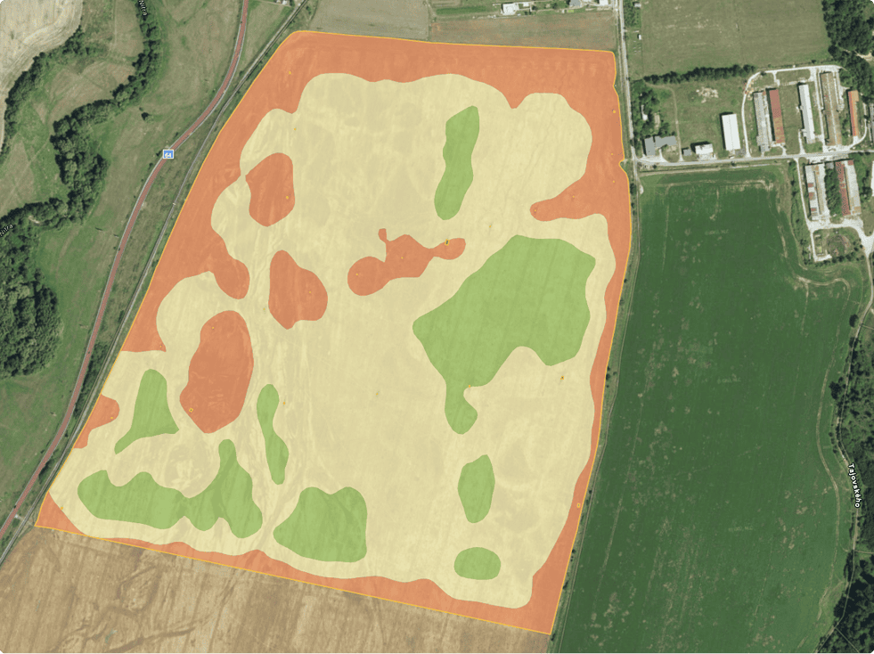 By using productivity potential data for the specific field, we can identify stronger and weaker zones based on historical field productivity data from previous years. In the stronger (green) zones, where fertility is higher, we reduce the seeding rate, relying on the wheat’s ability to tiller and form a denser stand naturally. This approach maximizes the use of the field’s full potential while avoiding the issues of overly dense planting, which makes these areas more susceptible to diseases or lodging.